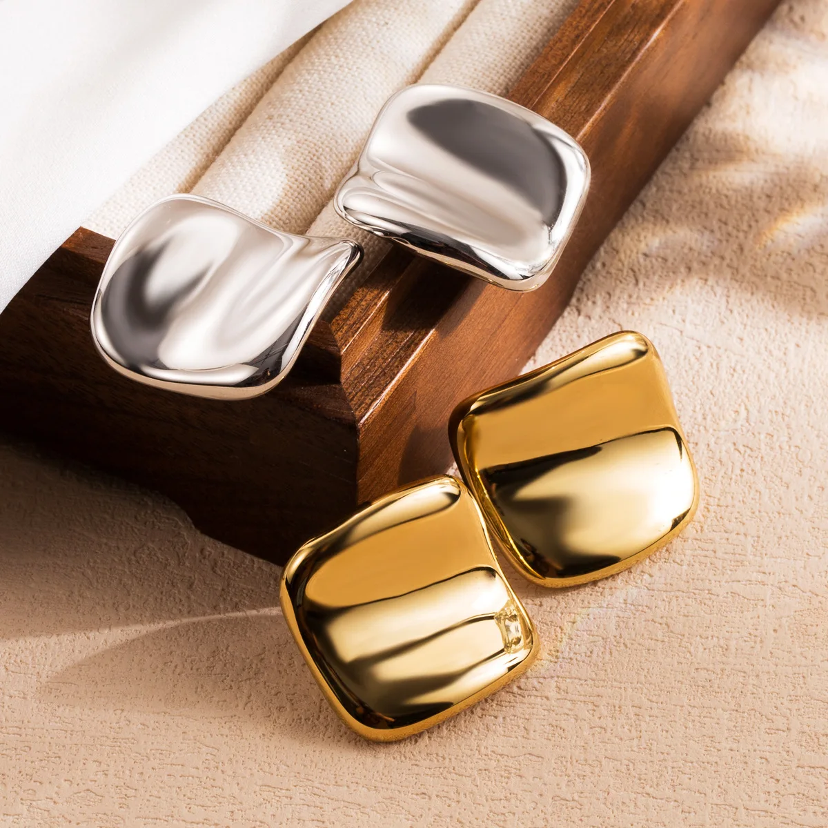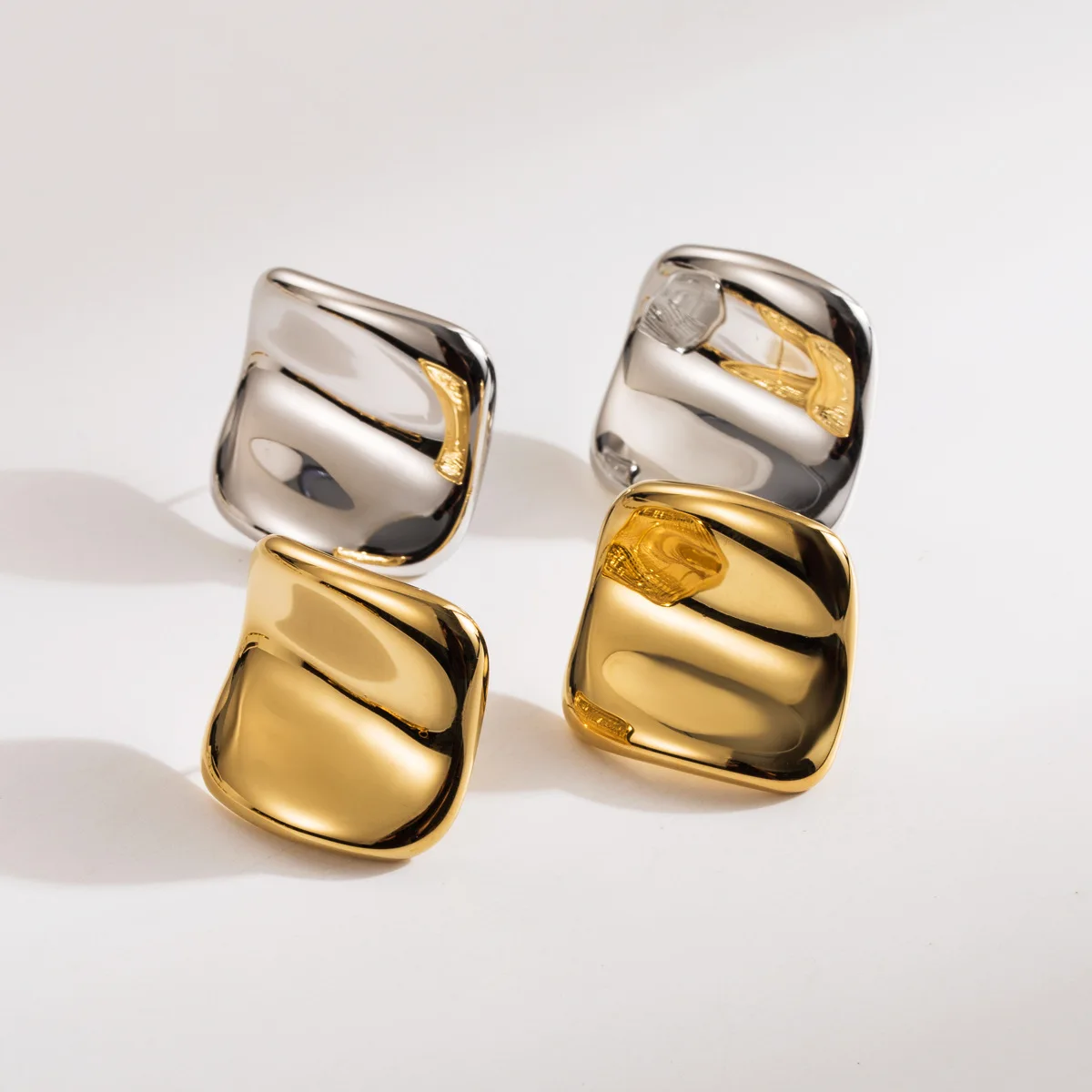 MW New Arrival Fashion Stainless Steel Earrings: French Smooth Square & Hammered Stud Designs